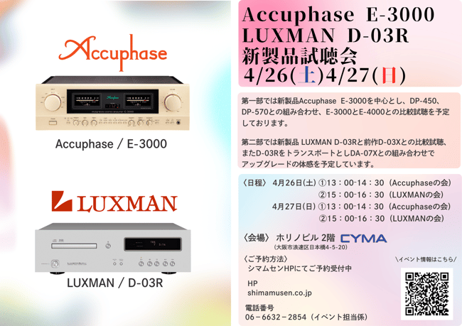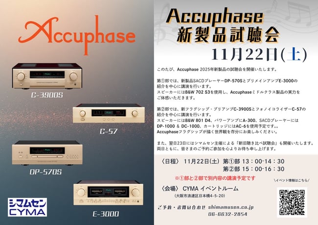 また前日22日には、メーカー主催のAccuphase 新製品試聴会」がございます。